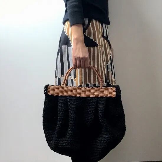 本体は麻紐、持ち手をラタンで編んだ手仕事のバッグです。